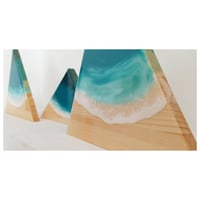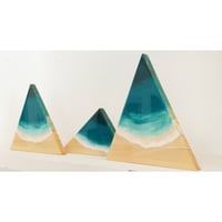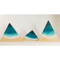 Conjunto de triángulos que puedes colgarlos en la posición y orden que quieras o incluso ponerlos de pie en alguna estantería. Medias de alto y de ancho aproximadamente: 23x30cm, 13,5x28cm y 24x23cm. Hechos a mano con resina
